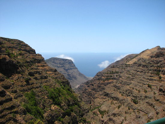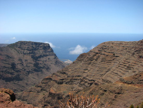 Es ging morgens los um 8 Uhr nach La Calera. Beide trugen einen kleinen Rucksack mit Proviant und 1,5 Liter Wasser. Nach einer kleinen Frühstückspause um 8.40 Uhr in La Calera (liegt auf 50 Meter Höhe), kam das anstrengste Stück. Es ging den Berg hinauf, mindestens 750 Meter, bis zu Riscos de la Mérica (ein Aussichtspunkt auf das Valle Gran Rey). Dort sahen sie dann den kleinen Baum. Der doch in natura etwas größer aussah.