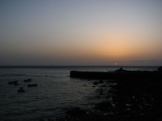 Heute klappte es dann endlich: Marco fing seinen Fisch, dessen Namen er wieder vergessen hat. Da es nur ein sehr kleiner Fisch war, hatten die Nachbarn wieder Mitleid mit uns und gaben noch zwei Fische von ihrem etwas reichhaltigerem Fang ab. Für alle Zuhausegebliebenen sei berichtet: Alojera ist wunderschön und richtig ruhig - wenn nicht grade eine 18-köpfige Familie ihre Party neben unserm Apartment feiert. Morgens fällt man vom Bett ins Meer - wenn man will. Und um drei Uhr nachts scheint der Vollmond über dem Meer direkt durch die Eingangstür unserer Bleibe mitten ins Schlafzimmer (Das weiß man wenn man um solch nachtschlafende Zeit quengelnden Kindern die Windeln wechseln muss.)
