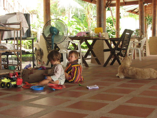 Wenn die Kinder nicht wären, man könnte hier doch tatsächlich den ganzen Tag auf der faulen Haut liegen, ab und zu baden und sich vom Kellner dann und wann einen Mangoshake (eisgekühlt) bringen lassen.