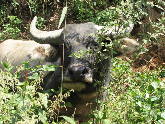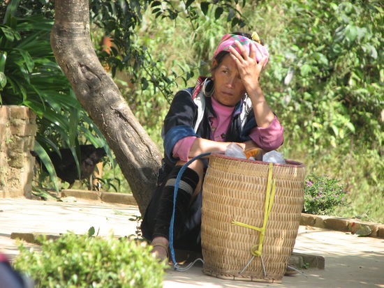 Die Idee, selbst organisiert einen Dorf mit Markttag zu besuchen scheiterte leider aufgrund der Entfernung. Dazu war es sehr schwierig, auf die Schnelle gute Informationen zu bekommen. Also wagten wir letztlich die gebuchte Gruppentrekkingtour mit anschließender Massenverpflegung (Lunchtime) in einem Dorf. Gleich zu Beginn liefen wieder viele H`mong-Frauen mit uns mit, um ihre Utensilien, wie Mützen, Taschen, Stoffe, Schmuck etc. an den gemeinen Touristen zu bringen.