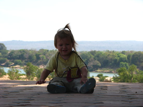Heute sind wir sehr früh aufgestanden und bereits um 8:30 mit dem Tuk Tuk zum Bahnhof gefahren. Das Zugticket sollte uns bis Ubon Ratchatani bringen. Wir haben uns ein Dritte-Klasse-Ticket im Local-Train gekauft. Der Zug hielt an jeder Gießkanne, wodurch wir viel von der Landschaft sehen konnten. Nach drei Stunden hatten wir Ubon erreicht. Weiter ging es die nächsten zwei Kilometer mit dem Taxi bis zum Markt von wo der Bus nach Phibun losfuhr. Auf dem Markt deckten wir uns noch mit ein paar Mandarinen ein und weiter ging es mit einem "Schulbus" (es saßen ganz viele Kinder in Schuluniform drinnen.) Dann wieder einen Kilometer weiter mit dem Tuk Tuk. Dieser letzte "Bus" sollte uns nun an unseren Zielort Kong Chiam bringen. Es war aber nur noch ein Songthaew zu haben (hinten auf der Ladefläche hat dieser offene LKW außen zwei Bänke und eine Bank in der Mitte.) Es war also recht windig auf der Ladefläche. Während Lili vorne im LKW saß und mit Yara die halbe Fahrt verschlief, saßen Marco und Lia hinten und übten schon einmal, wie sich das Reisen in Laos anfühlen könnte. Lia schlief trotz des starken Fahrtwindes sofort ein und Marco genoss die Kühlung durch den Wind. Um 17:30 kamen wir dann nach einer kurzen Tuk Tuk-Fahrt in unserem Guesthouse in Kong Chiam an. Der Ort liegt genau am Zusammenfluss des Flusses Mun und dem Mekong. Dadurch, dass dieser "kleine" blaue Fluss in den großen braunen Mekong fließt, soll es hier ein prächtiges Farbenspiel zu sehen geben. Na, mal sehen, ob wir dieses hier bewundern dürfen. Lao liegt nur noch einen Steinwurf von hier entfernt.