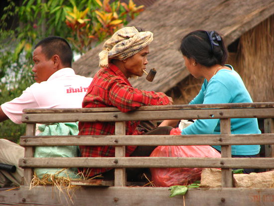 In der Frühe von Pakxe nach Tad Lo weiter gefahren. Mit dem Tuk Tuk ging es zuerst zum Busbahnhof. Dort angekommen, brauchten wir nicht lange warten. Der Bus nach Tad Lo stand schon abreisebereit. Ein alter klappriger, sehr abgenutzter Bus - aber es soll ja hier noch schlimmere Busse geben. Wir hatten das Glück, vier Sitzplätze für uns alleine zu haben.