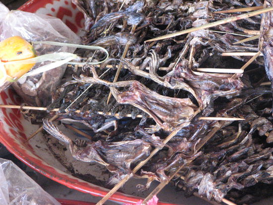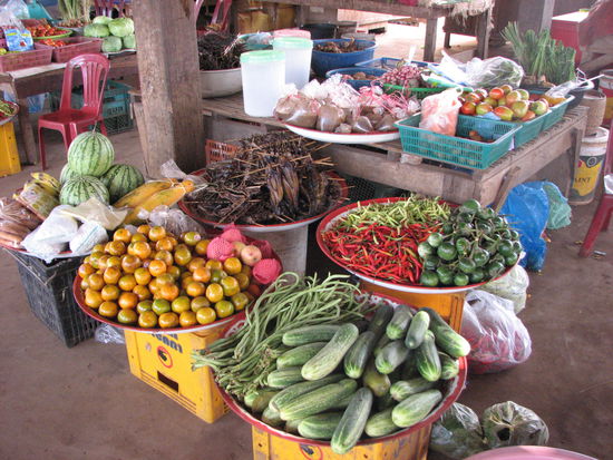 Heute fahren wir mit dem Bus wieder zurück nach Pakxe. Von Pakxe soll die Fahrt morgen nach Thakek weitergehen. In dem Bus haben wir anfangs keinen Sitzplatz und müssen auf dem Boden sitzen. Zum Glück steigen einige Leute bald aus und Marco hat später sogar zwei Sitzplätze zur Verfügung. Neben Lili sitzt eine alte Frau, die Yara einige Kuchenstücke und zwei kleine Maiskolbén zuschiebt. Seitdem kaufen wir desöfteren Maiskolben hier. Die sind eine echte Delikatesse hier.