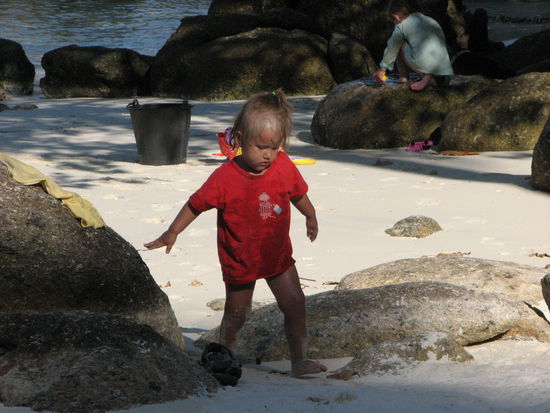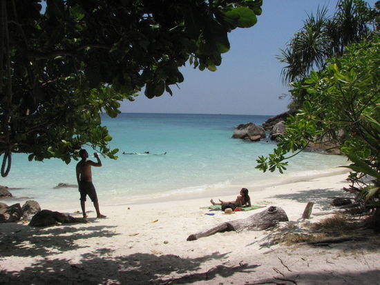 Leider ist diese Trauminsel nicht nur uns, sondern auch vielen anderen Touristen bekannt. Wer hier Einsamkeit am Sandstrand sucht, ist hier deplaziert! Das Grün der Insel wurde in den letzten Jahren drastisch verkleinert. Viele Bungalowanlagen ziehen sich nun am Sandstrand entlang. Dennoch ist die Anzahl der Strandgänger tagsüber begrenzt. Es ist hier so heiß ( bestimmt 34 Grad), dass man sich hier am liebsten im Bungalow unter dem Ventilator, der Klimaanlage oder im Schatten der Bäume aufhält. Der tägliche Wasserflascheneinkauf wird zur Qual und Sonnenbrand ist hier ein Muss! Dennoch - das Badewasser ist einfach phantastisch.