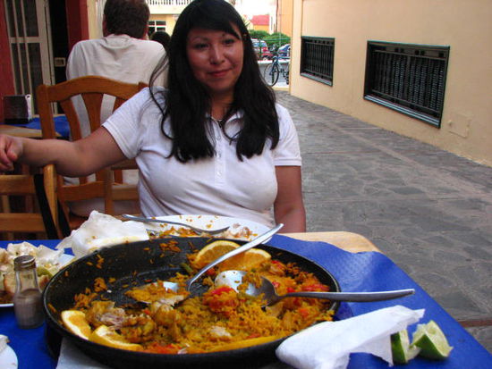 Gomera-Chinesen mit einigen Scampis drin. Diese pulte sie dann an die Seite. Erst als sie schon kalt waren durfte ich, Trude, sie dann vertilgen. Im Fischrestaurant ließ sie den halben Fisch auf dem Teller. Seit Tagen aber liegt sie Marco schon im Ohr, endlich mal eine Paella zu essen, weil das ja eine Spezialität sei. Natürlich ist da Fisch drin! Als die große Paella-Pfanne dann auf dem Tisch stand, machte Lili auch gleich ein Foto, weil sie so appetitlich aussehe, so meinte sie. Doch alsbald wurde wieder der Fisch herausgepult. Ich bekam wieder die kalten Stückchen, Lili aß den Reis.