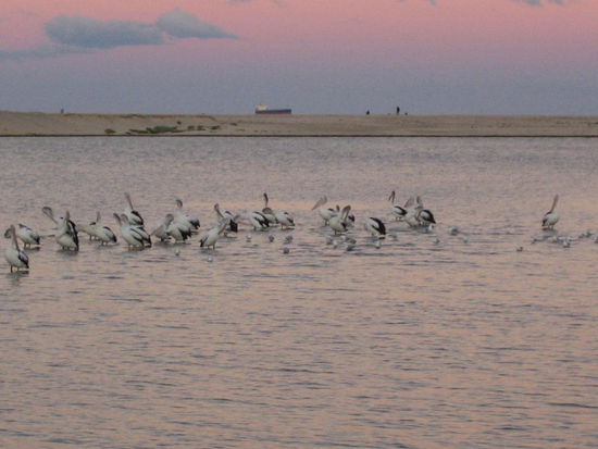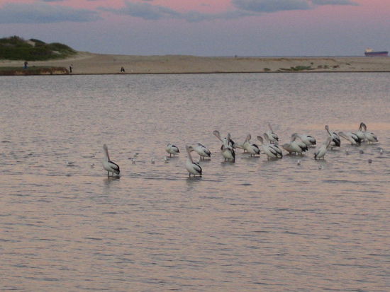 Der erste Abstecher sollte uns zu einer Pelikankolonie in The Entrance fuehren, die sich an der Muendung zum Pazifik angesiedelt hat. Auf dem Weg dorthin (aber shcon im Ort) konnte ich nicht umhin, dem Ruf der Kueste bzw. des Wassers zu folgen und so haben wir einen herrlichen See entdeckt, der uns erstmalig bestaetigte, mit einem eigenen Auto und der Freiheit, ueberall - besonders ausserhalb der klassischen Touripunkte - anhalten zu koennen, alles richtig gemacht zu haben...