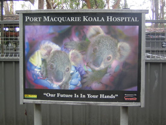 Erster Stopp war das Koala-Hospital, das verletzte oder von Buschbraenden verbrannte Koalas aufnimmt und wieder aufpaeppelt. Ganz suess und ganz schoen traurig.