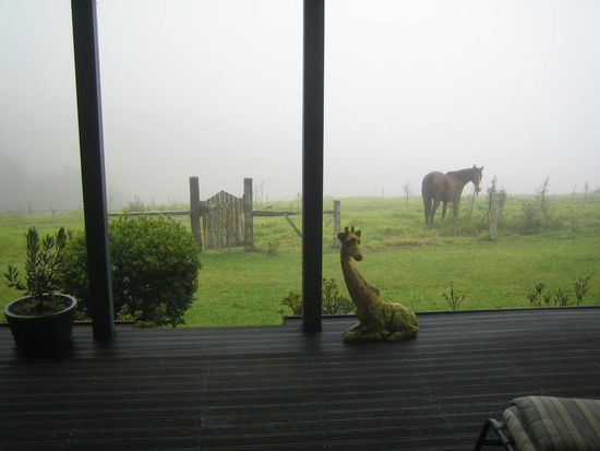 Nach einer herrlich ruhigen und mummelig warmen Nacht wurde es Tag und die Welt sah ganz anders und besonders nicht mehr ganz so unheimlich. Nebelig war es weiterhin, allerdings war es - wie Helen (die Dame, der das Haus gehoert) uns erklaerte gar nicht nebelig - wir waren nur so weit oben auf dem Berg, dass wir mitten in eine Wolke blickten. Die lichtete sich aber kurz nach dem Fruehstueck, so dass wir endlich auch ein wenig von unser Umgebung bewundern konnten: natur pur!!!