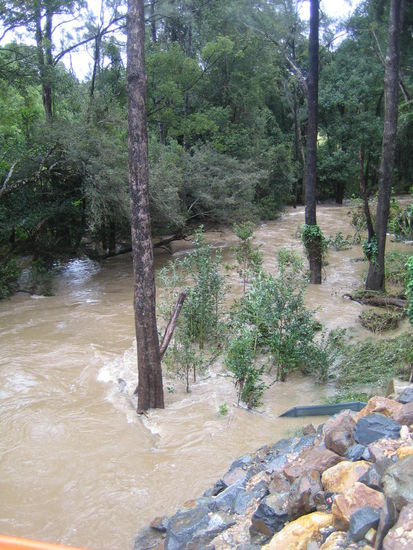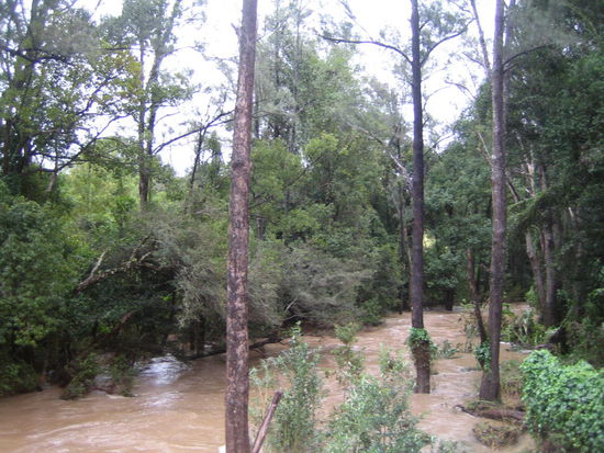 Danach war uns offiziell erlaubt, ihm ins Hinterland und nach Nimbin hinterherzufahren, was sich aber genau in dem Moment erledigt hatte, als er auf der Autobahnauffahrt eine Vollbremsung hinlegte und ich gezwungen war, zu ueberholen. Also haben wir uns selbst nach Nimbin durchgeschlagen. Mit dem Ergebnis, dass alle uns vor den ueberfluteten Strassen warnten.