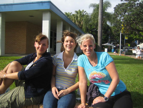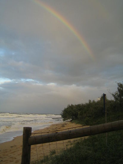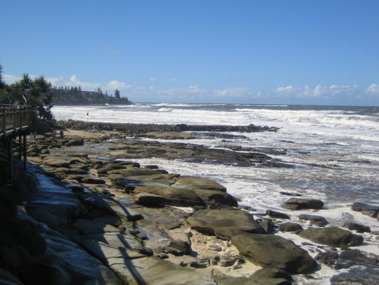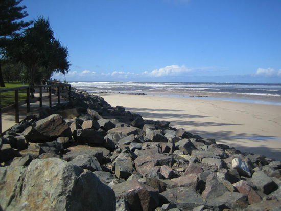 Da wir den Wagen noch einige Tage hatten, damit aber nicht nach Brisbane fahren wollten, da er dort sowieso nur nutzlos vor der Tuer gestanden haette, sind wir erst einmal an Brisbane vorbeigefahren und haben uns als naechstes Ziel das Kuestenstaedchen Caloundra ausgesucht. Ganz suess. In diesem Ort gibt es genau ein Hostel. Dieses ist von einem franzoesischen Backpackerpaar gefuehrt und total sauber, nett und familiaer. Hier haben wir uns wirklich wohl gefuehlt und trotz schlechtem Wetter (mal wieder) die Seele baumeln lassen. Wir haben neben einigen Straenden...