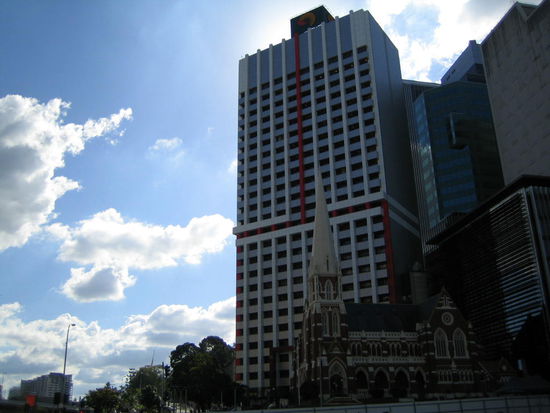 Brisbane. Endlich mal wieder eine Stadt.: Sightseeing alone: eine Kirche und viel Gruen