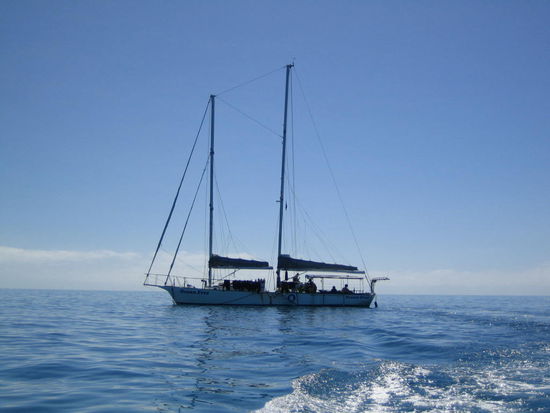Los ging es frueh am Morgen und unsere uebersichtliche Truppe von ca. 18 Leuten (auf einem Boot, dass eigentlich fuer 30 Personen ausgelegt wurde, also vieeeel Platz zum Sunbaking) wurde mit koestlichen Muffins begruesst.Das ist ja ein guter Start. Yammi.