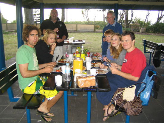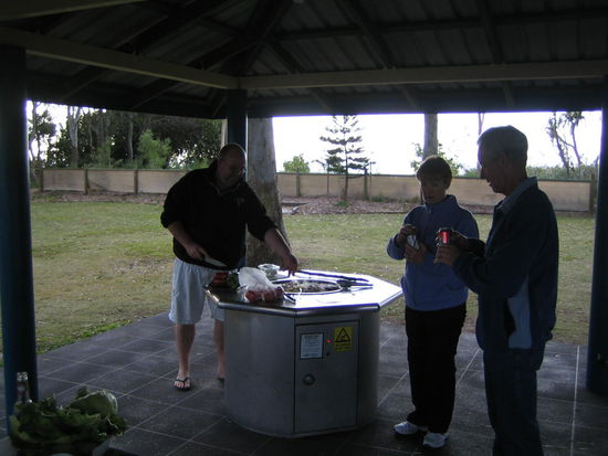 Nach einer weiteren kurzen Nacht, aber einer dafuer umso ruhigeren letzten Schicht, hat Mark, mein Boss und lieber Freund, fuer mich ein echtes Aussie-Abschieds-BBQ geschmissen. Natuerlich hat H-Bay sich von seiner besten Sseite gezeigt: graue Wolken und ein fieser kalter Wind...