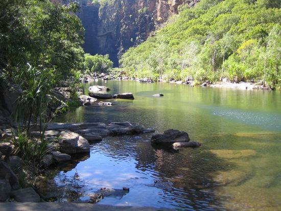 Ich habe mich dann auch als erstes wieder auf den Rueckweg gemacht - ich war ja eh die Langsamste. Und tatsaechlich: gegen Ende des Weges hatte meine Gruppe mich eingeholt. Unsere Guide hat aber auch ein Tempo vorgelegt... und da ich wirklich vermeiden wollte, einen weiteren falschen Schritt zu machen und am Ende von den Royal Flying Doctors abtransportiert zu werden, habe ich es doch bevorzugt, mein eigenes Tempo zu gehen, mir zwischendurch auch mal die traumhafte Landschaft anzuschauen, statt durchzuhetzen.