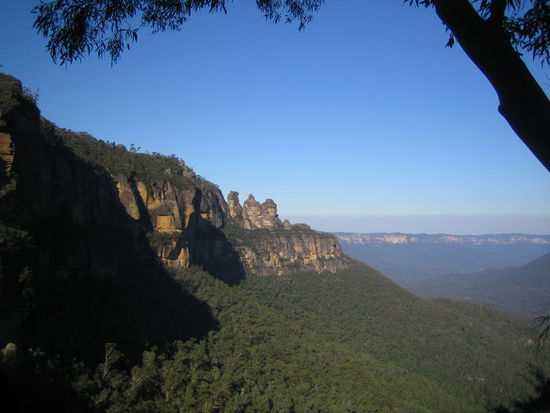 Und danach ging es zu den Blue mountains - unglaubliche Weiten und Natur, Natur, Natur. Entgegen meiner Erwartung ging es nicht nur auf Foto- sondern auch auf WAndertour. Hier zeigte sich also, ob mein Schuhwerk (Asics mit hauchduenner Sohle), die ich immer wieder verteidigt habe mit dem Argument, ja nicht in Trekkingurlaub zu fahren. Anfangs habe ich zugegebenermassen auch nicht wirklich verstanden, was unser Guide mit #Stones are your friends# meinte. Als es aber dann durch zentimeterhohe Schlammpfuetzen ging, begriff ich, dass ich diese Tour nur trockenen (und sauberen) Fusses ueberstehen kann, wenn ich von Stein zu Stein huepfe. Das klappte nicht immer, meine Schuhe waren nachher natuerlich nicht mehr braun-weiss, sondern einfach nur noch kackbraun, die Fuesse nass und der Natur war es mir wirklich genug (ich habe jetzt den Ruf als Naturmuffel weg), aber unter uns gesagt fand ich es doch ganz urig durch den Regenwald zu rennen und der Ausblick hat definiv entschaedigt...