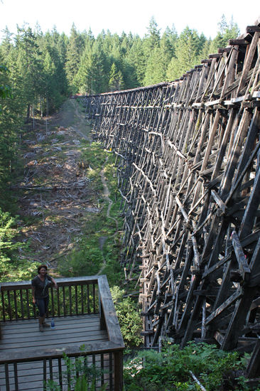 Da wir uns Bootsfahrt zur Walbeobachtung in Victoria angemeldet hatten, haben wir uns am nächsten Tag wieder gemütlich in Richtung Süden auf den Weg gemacht. Auf dem Weg liegt eine alte Eisenbahnbrücke - Kinsol Trestle - die wir nur mit Müh und Not gefunden haben. Wenn man die Abzweigung und den Parkplatz mal gefunden hat, erreicht man die Brücke nach einem 10minütigen Fußmarsch. Man kann sich gar nicht vorstellen, dass da noch 1976 die letzten Züge drüber gefahren sind.