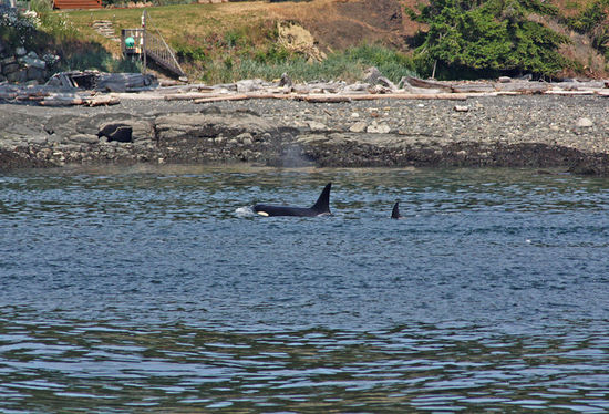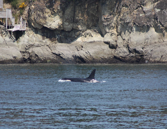 Die Crew auf dem Schiff ist ja ständig mit Leuten in Verbindung, die nach Wale Ausschau halten. Und tatsächlich wurde eine Orca-Walmama mit ihrem Kind in Küstennähe gesichtet. Da die Beiden aber relativ nahe an der Küste schwammen und wir mit unserem Boot leider eine gewisse Grenze nicht überschreiten durfen, sahen wir die Beiden leider nur aus einiger Entfernung. Übrigens, der älteste Wal in dieser Umgebung ist eine sehr alte Dame mit dem Namen Granny und ist 98 Jahre alt!!!