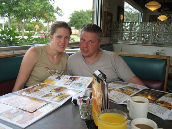 RJS holen uns um 8.40 Uhr ab, dann gehen wir erst mal bei Denny's frühstücken. Der Laden ist leider nicht mehr so schön wie wir ihn in Erinnerung haben. Alles sehr ungepflegt und unsauber. Auch das Essen, auf das wir eine halbe Ewigkeit warten müssen, schmeckt nicht besonders.