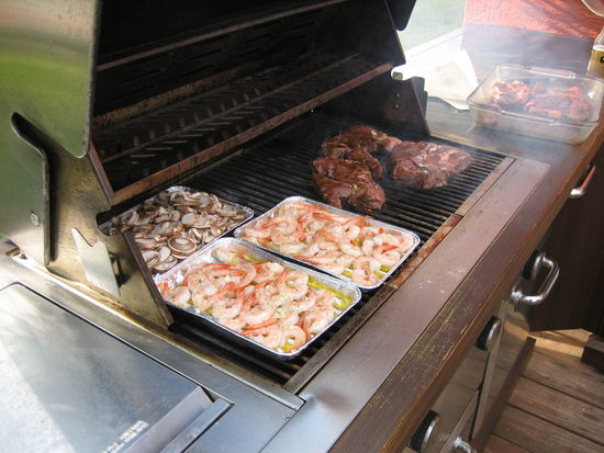 Eigentlich wollten wir um 14.00 Uhr zu RJS, die sind aber unterwegs. Daher beschließen Thomas und Peter zu zweit zum Bass Pro Shop (einem riesengroßen Geschäft für Angler und Outdoor-Freaks) an der 75 zu fahren. Heike und ich bleiben zurück, kaufen beim Publix alle Zutaten für einen großzügigen Grillabend ein und marinieren zu Hause die Steaks, den Fisch und die Krabben.