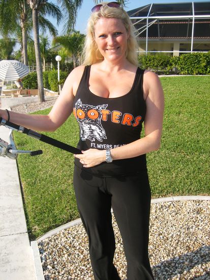 Beim Hooters parken wir und kaufen dort ein Tank-Top für mich. Da wir schon mal hier sind, essen wir einen Salat und Chicken-Wings (die sind heute im Angebot).