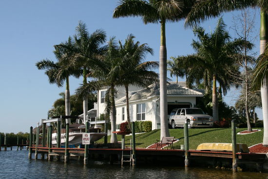 Wieder zurück in Cape Coral suchen und finden wir nach einiger Zeit den Walmart. Dort kaufen wir bessere und trotzdem billigere Handtücher und Lebensmittel. Einen Wäscheständer, der im Haus auch fehlt, finden wir nicht. Daher fahren wir auf dem Weg zum Haus noch am Home Depot vorbei. Einen Wäscheständer gibt es dort auch nicht (nach Auskunft der Maklerin trocknen die Einheimischen ihre Wäsche nur im Trockner...!), dafür bekommen wir dort aber Lampenöl für die Petroleumlampen an unserem Bootssteg.