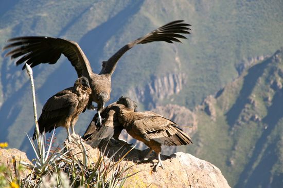 Im Canyon halten wir noch an einem Ausichtspunkt und haben unglaubliches Glueck, wir sehen ca. 20 Kondore, die nur ein paar Meter ueber uns kreisen. Nach einer Stunde und ca. 200 Fotos ist das Spektakel vorbei.