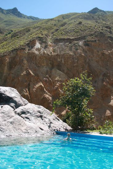 9.05.09 Ein lockerer Wandertag in den Tiefen des Colca-Canyon. Bereits um 13:00 Uhr erreichen wir das Tagesziel - eine Oase mit Swimmingpool.