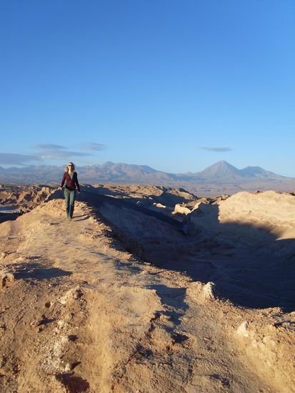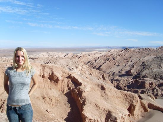 Man kann hier unglaublich viel machen, weil die Natur hier so viel bietet: Ausfluege ins Valle de la Luna (Tal des Mondes), um den Sonnenuntergang zu sehen, zu den Geysiren (auf 4300 m Hoehe), Mountain bikes mieten und auf eigene Faus losfahren, abends mit einem Astronomen zum Sterne gucken in die Wueste raus und tausend weitere Touren. Hier in der Naehe wird gerade das groesste Teleskop der Welt gebaut, mit dem man Sterne und Planeten dann 100 Mal groesser sehen kann, als das momentan moeglich ist. Die Touren sind leider alle ziemlich teuer, so dass wir uns auf das Mondtal und die Geysire beschraenkt haben.