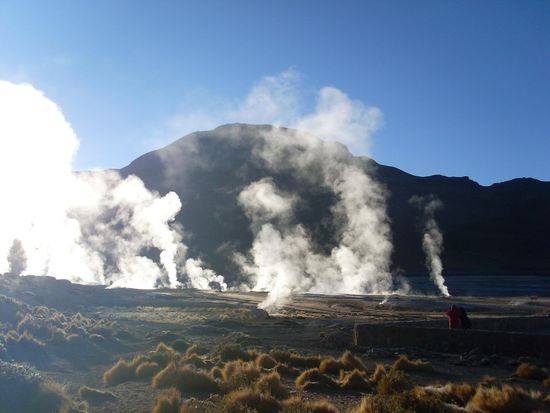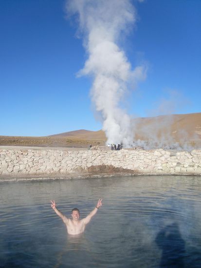 Beides war klasse, sind so stolz auf unsere Fotos!! Valle de la Luna haben wir uns bei Sonnenuntergang angeschaut, zu den Geysiren gings um 4:00 Uhr morgens los, bei geschaetzten 5 Grad Minus. Die Hoehenluft ist schon duenn, haben wir gemerkt!