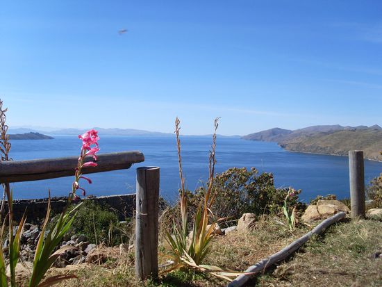 Nachdem wir an unserem zweiten Tag in La Paz Natalie und Philipp aus Deutschland kennengelernt haben, sind wir am naechsten Tag zusammen zum Titicacasee gefahren, einem der hoechstgelegenen schiffbaren Seen der Erde. Riesengross, strahlendblau und umgeben von schneebedeckten Bergen - einfach wunderschoen!! Peru und Bolivien "teilen" sich den See - die kleine Insel Isla del Sol gehoert allerdings zu Bolivien, und auf dieser Insel haben wir 2 Tage verbracht. Nachdem Isa in La Paz einen kleinen Magenvirus hatte, war Christian dann auf der Isla dran :-/ Also nicht ganz so lustig, aber man ueberlebt alles!
