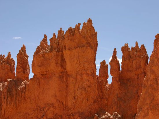 Im Bryce wollten wir zunächst die sogenannten View Points abfahren, um danach noch einmal direkt durch einen Teil der bizarren Steinformation zu wandern. Für die gerade mal 32 Meilen lange Strecke haben wir allerdings bereits ca. 3 Stunden gebraucht. Jeder Aussichtspunkt hatte seine eigenen Highlights. Die zweite Lektion für heute: auch nur ein kleiner Anstieg in 2.700 Meter Höhe kann verdammt anstrengend sein.