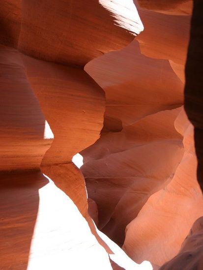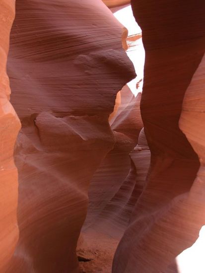 Heute mussten wir Page leider wieder verlassen. Es war eine schöne Zeit mit sehr freundlichen Leuten. Nachdem Traci uns herzlichst verabschiedet hat, fuhren wir zum Lower Antelope Canyon. Im Upper AC findet man zu bestimmten Zeiten zwar die so genannten Beams - Sonnenstrahlen, die in den Canyon fallen und wie gebündelte Lichtstrahlen aussehen - aber genauso überfüllt soll dieser Canyon sein. Als wir den Trip buchen wollten, waren bereits bei der einen Agentur fast alle Plätze belegt - und das waren 5 Trucks, die jeweils 15 Personen fassen. Dazu kommen noch andere Veranstalter. Auch ohne diese Lichter waren wir von der Schönheit und der Farbenpracht im Lower Antelope Canyon überwältigt, so dass wir fast die Letzten waren, die diesen Ort von unserer Gruppe wieder verließen. Leider hatten wir das Stativ im Auto gelassen, dennoch sind uns, glaube ich, einige schöne Bilder gelungen. Hier eine kleine Auswahl.