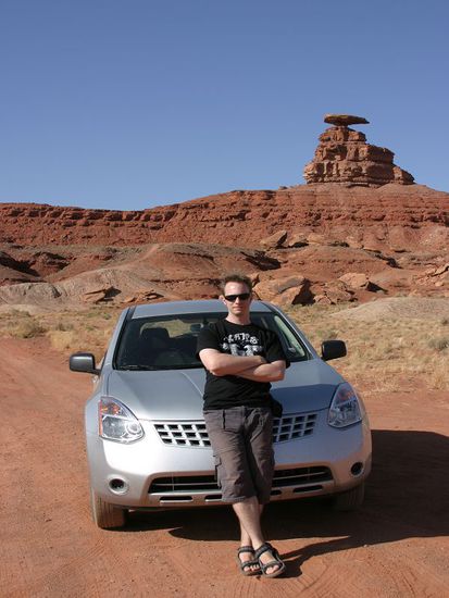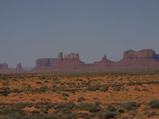 Die Fahrt zum Mexican Hat und ins Monument Valley war weniger spektakulär. Außer einem Unfall, der uns dazu zwang eine weniger befahrbare Strecke zu nehmen, passierte nicht viel. Es ist halt alles Wüste und ab und zu kommt mittendrin ein Haus oder sollte ich besser sagen, eine Behausung und man wundert sich, wer hier wohl lebt. Bevor man nach Mexican Hat kommt, eröffnet sich einem rechts der Blick auf das Monument Valley. Ehrlich gesagt, sieht es auf den Fotos und Bildern, die man so kennt, viel spektakulärer aus, als es in Wirklichkeit ist. So waren wir nach den vielen tollen Nationalparks ein wenig enttäuscht. Wenn man also etwas von unserer Route weglassen könnte, dann wäre es das Monument Valley.