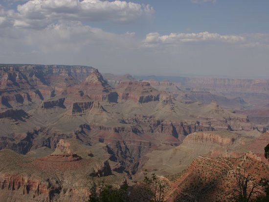 Dann war es endlich soweit, wir passierten den Osteingang zum Grand Canyon. Dort zeigte uns aber schon die Anzeigetafel, dass zwar das Wetter super, aber die Sicht nicht wirklich toll sein sollte - und so war es dann auch. Man hatte das Gefühl, dass über allem ein leichter Schleier lag.