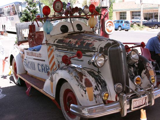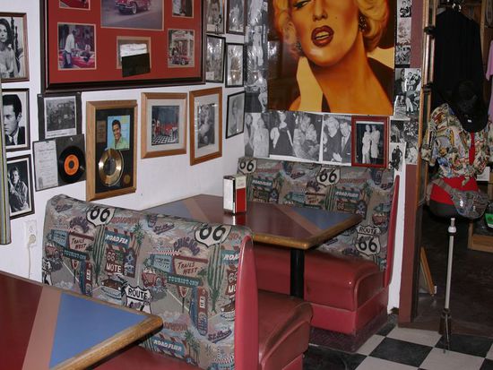 Es handelt sich im Grunde genommen nur um eine ganz normale Straße, die an einigen Orten vorbeiführt, die eigentlich nur noch für die Touristen bestehen, sie ist aber die Mutter aller amerikanischen Sraßen. Andere Orte sind aufgrund der nunmehr vorbeiziehenden Interstate fast schon Geisterstädte. Die musikalische Unterhaltung ist - wie offensichtlich überall in den Staaten - eher schwierig. Entweder man hat keinen guten Empfang, es wird nur gequatscht oder die Musik ist einfach nur fürchterlich. Auf der Route 66 jedoch haben wir Country Musik gehört.