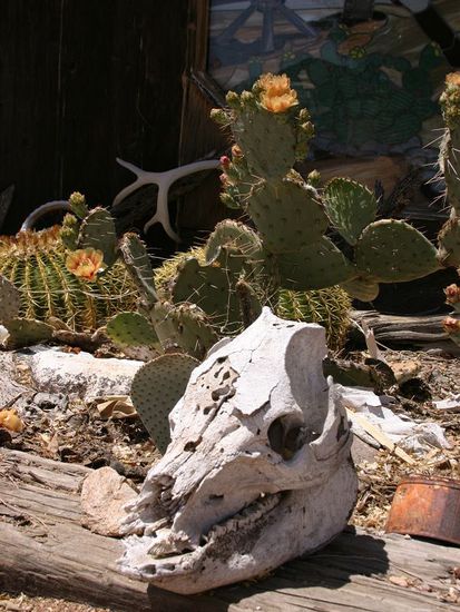 Oatman selber ist eine total witzige Wild West Stadt. Auf den Straßen laufen Esel frei rum und versuchen den Touristen ein paar Möhren abzuluchsen. Die Häuser links und rechts von der Straße sind im Wild West Stil gebaut. Natürlich gibt es überall auch Touri-Shops, aber dennoch ist alles nett anzuschauen. Leider können wir euch keine Bilder davon zeigen, denn wir konnten einfach nicht mehr aussteigen. Es war viel zu heiß. Wir hatten es ca. 37-40 Grad draußen und es war kaum im Auto mit Klimaanlage auszuhalten. Daher sind wir dann von Oatman auch von der Route 66 abgebogen, um nach Needles und von dort weiter nach Blythe zu fahren. Die Straße nach Blythe - nun es ist kaum zu beschreiben. Es geht immer geradeaus, aber diesmal ist nicht alles flach sondern die Straße ist sehr hügelig und könnte man hier schneller fahren, dann könnte glatt ein wenig Achterbahngefühl aufkommen. Aber es sind hier halt nur 55 bis 65 Meilen pro Stunde erlaubt (was zwischen 80 und 100 km pro Stunde bedeutet). Maximal auf der Interstate darf man 75 Meilen pro Stunde fahren (120 kmh). Ach ja, und es gibt mal wieder für Meilen nichts als das weite Land um einen herum. Keine Stadt, kein Dorf... nur einmal eine kleine Ansammlung von Häusern, wobei die meisten schon sehr heruntergekommen aussahen und man sich wie so oft in der letzten Zeit fragte, wer wohl in dieser Einöde lebt.