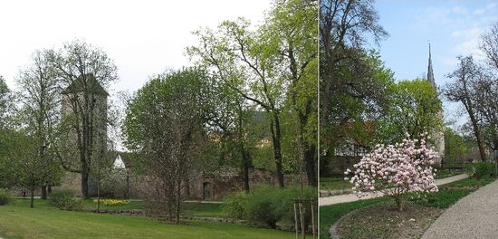 Heute wollen wir noch eine kleine Landtour machen. Da wäre zunächst einmal Bad Langensalza, das wir über schöne kleine Strassen durch blühende Obstlandschaften erreichen. Kohl's Worte von blühenden Landschaften kommen einem in den Sinn. Hier beschließe ich auch den restlichen Tag noch zu nutzen um eine Reihe der verschiedenartigsten Kirchtürme Thüringens aufzunehmen.