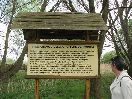 Mit unserer Bauhauscard können wir auch noch Niederdorla (einer der 4 errechneten Mittelpunkte Deutschlands) mit seinem Opfermoor besichtigen. Den Baumwipfelpfad im Naturpark Hainich müssen wir wegen Nicht-Schwindelfreiheit von Ulrike auslassen.