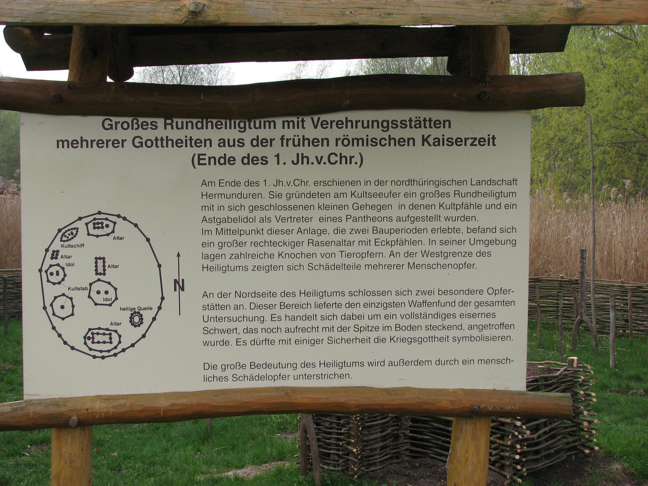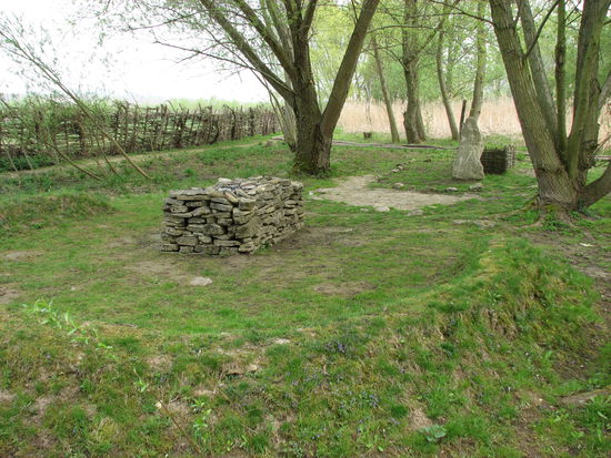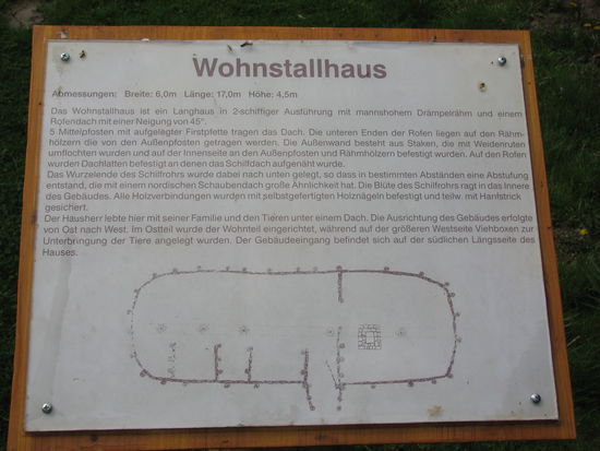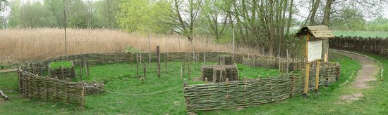 Eine ganze Reihe Grubenhäuser und ein Wohn-Stallhaus ist rekonstruiert ebenso eine Reihe von Kultstätten, die hier im ehemaligen (bis 1964 betriebenen) Torfmoorstechgebiet ausgegraben wurden. Von der Hallstattzeit bis zum 6. Jh. n. Chr. stammen die verschiedenen Opferstätten.