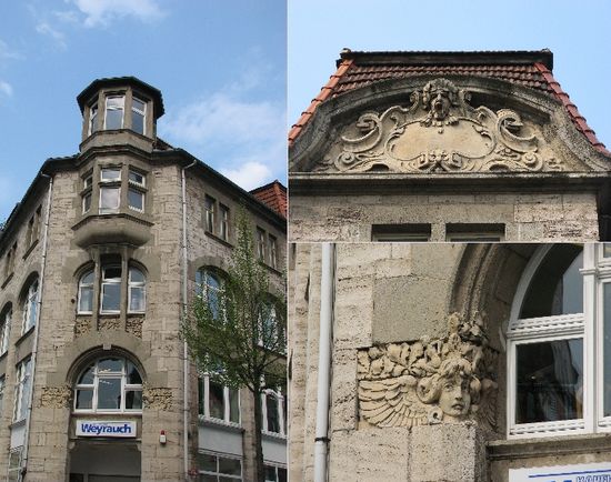 Ein paar Jugendstilhäuser sind auch vorhanden, aber meist Fachwerk.