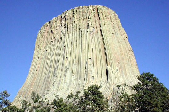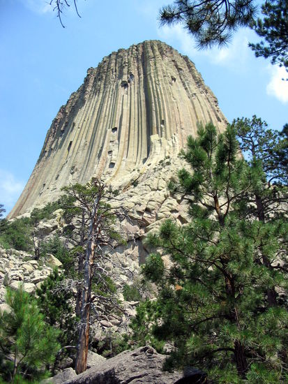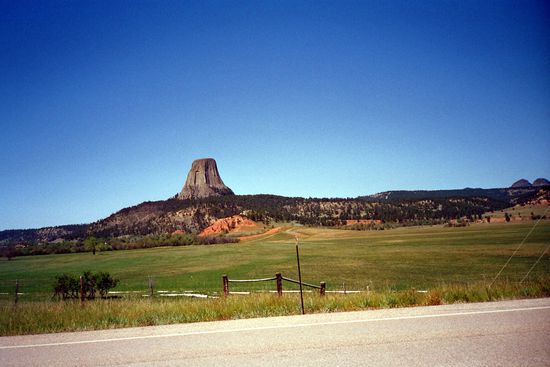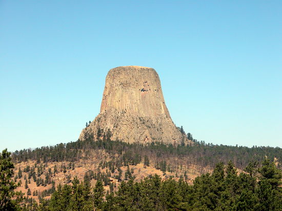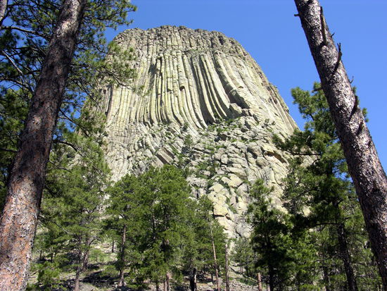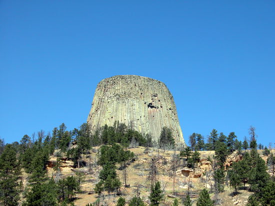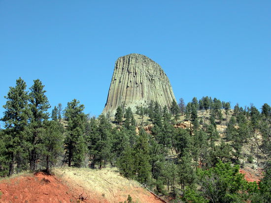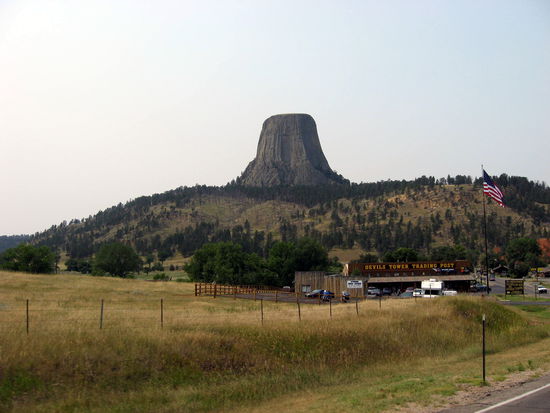 Der Devils Tower liegt im Osten Wyomings im Crook County. Schon von weitem konnten wir ihn sehen. Es handelt sich um einen Monolithen mit einer Höhe von 265m und einem Durchmesser von ca. 150m.