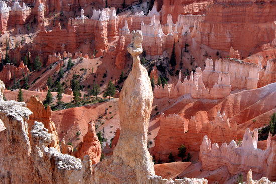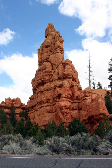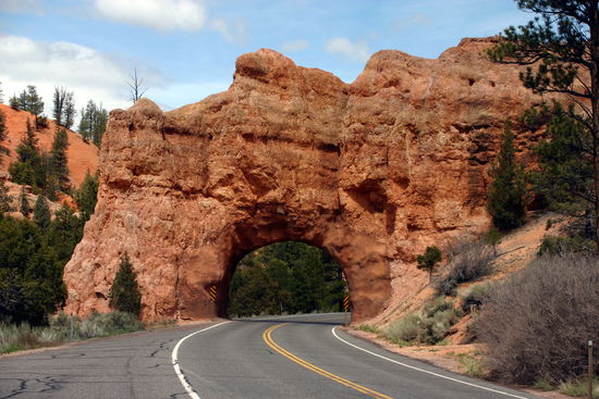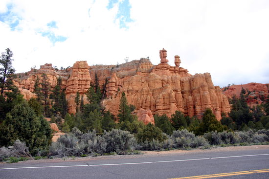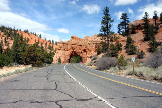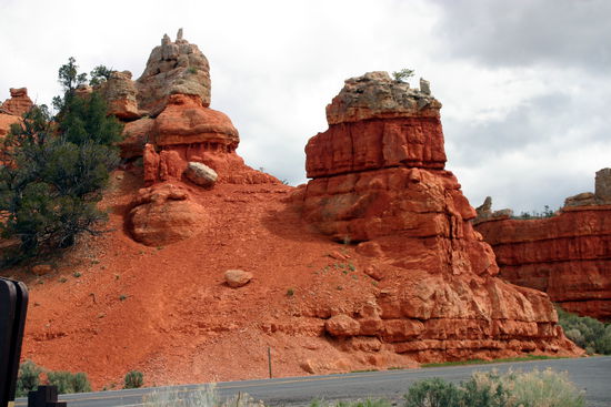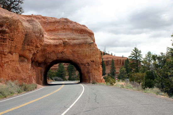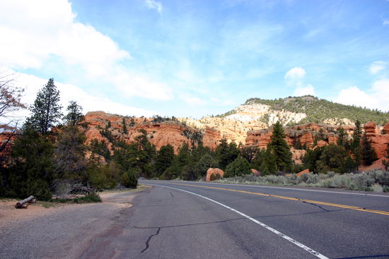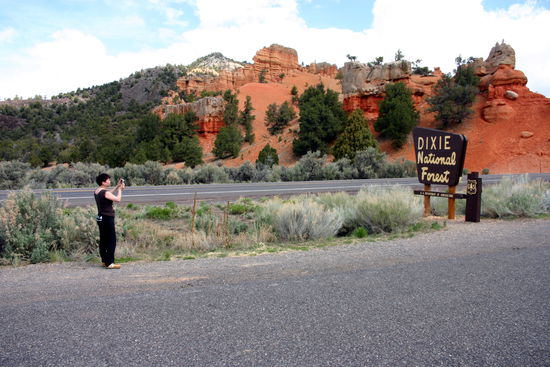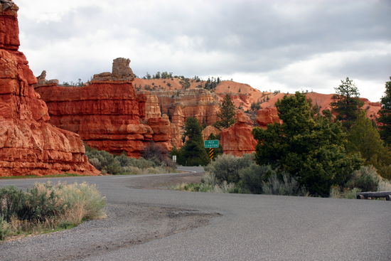 Von Salt Lake City aus fuhren wir am nächsten Morgen südwestlich in Richtung Bryce Canyon. Nach ca. 350 Km verließen wir den I-15 und fuhren auf dem UT-20, bzw. dem US-89 weiter bis Panguitch. Dort bogen wir links ab auf den UT-12 und erreichten nach kurzer Zeit den Red Canyon, durch den die Straße zum Bryce Canyon hinaufführt.