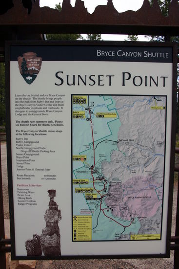 Nachdem wir den Red Canyon durchfahren hatten, kamen wir an Ruby's Inn, wo wir rechts abbogen und nach wenigen Minuten den Eingang zum Bryce Canyon erreichten.