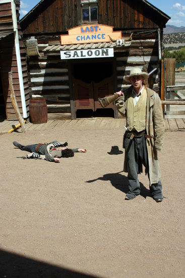 Nach dem Shoppen ging es weiter Richtung Süden, vorbei an Colorado Springs und dem Pikes Peak bis kurz vor Pueblo. Dort bogen wir nach Westen ab und fuhren an der geheimnisumwitterten NORAD Militärbasis vorbei nach Canon City. Dort befindet sich eine alte Westernstadt und die Royal Gorge Bridge, die höchste Brücke der Welt. Zuerst besuchten wir die Westernstadt.