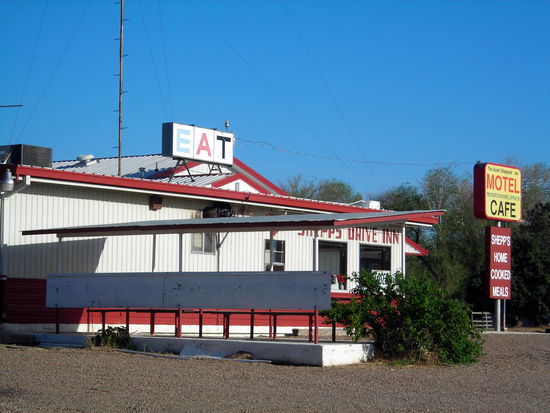 Wir fuhren stundenlang südöstlich durch Colorado. Dabei wurde der Verkehr immer weniger. Die einzelnen Abwechslungen waren hin und wieder entgegenkommende Trucks. Die CR-20 verläuft über eine Länge von 170 km schnurgerade, immer von einer Kuppe zur nächsten. Eigentlich rechneten wir damit, im Auto zu schlafen oder die Nacht durchzufahren. Als es schon dunkel wurde kamen wir nach Kit Carson, einem kleinen Nest im Südosten von Colorado. Hier gab es nur ein Motel, das Good Sheppard Inn. Um nicht doch im Auto schlafen zu müssen schauten wir ob ein Zimmer frei ist. Das Motel gehört einem alten Ehepaar, das in der Mischung aus Rezeption, Restaurant und Tante Emma Laden auch zu wohnen scheint. Dagegen wie es hier drin aussah, musste man einem mitteleuropäischen Messie einen Putz- und Ordnungszwang unterstellen. Auf den angebotenen Snack verzichteten wir dankend. Wir rechneten was die Zimmer betraf schon mit dem Schlimmsten, aber komischerweise waren die Tip Top sauber; Sachen gibts. Dann fuhren wir noch zu der einzigen Tanke im Ort um Getränke zu kaufen. Der Tankwart war dem Aussehen nach ein unehelicher Bruder von Rasputin. Irgendwie erinnerte uns das ganze an eine Mischung aus Muttertag und Texas Chainsaw Massacre.