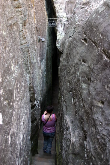 Wir folgten dem ausgeschilderten Rundweg, für den man ca. 1,5 - 2 Stunden benötigt. Dabei mussten wir auch so manches Nadelöhr durchgueren (Ich habe gerade noch durchgepasst).