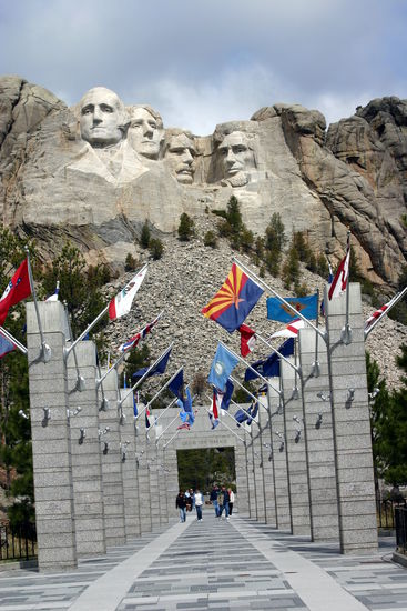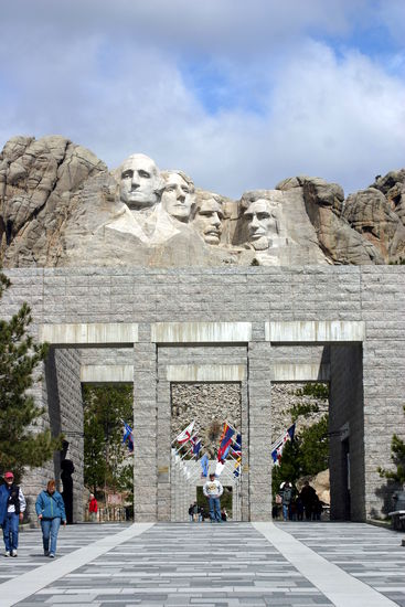 Es stellt die Präsidenten George Washington, Thomas Jefferson, Theodore Roosevelt und Abraham Lincoln dar und wurde von 1927 - 1941 aus dem Felsen gesprengt und gemeißelt. An den Arbeiten waren von der Logistik bis zu den direkten Bauarbeiten bis zu 400 Personen beteiligt. Aus Geldmangel wurde die ursprünglich geplante Darstellung der Präsidenten bis zu den Taillen nie verwirklicht.