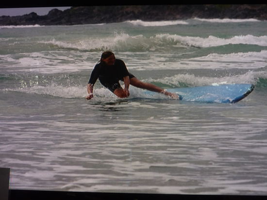 Jaa...also wenn man nach Australien kommt, muss man natuerlich auch mal surfen...hier macht man das nicht so wie in Holland mit Segel, sondern lieber ohne Segel, dafuer aber mit Wellen...reiten kann ich ja, aber mit den Wellen, das war nicht so einfach! Aber dafuer hat es ganz schoen gut geklappt!!!