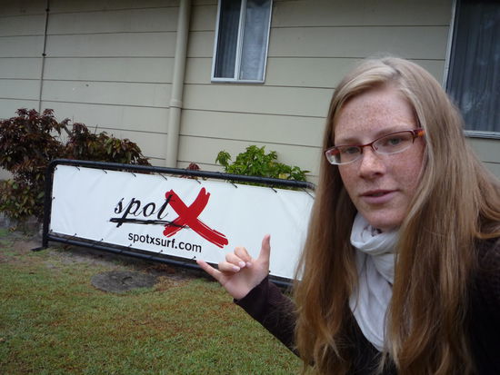 Ich bin also an diesem Surfing Spot angekommen - Spot x - und es war wirklich perfekt zum surfen - das Camp direkt am Strand und gute Wellen! Da grad Winter ist, sind hier auch nicht so viele andere Leute, die Surfen lernen wollen - nur die, die es schon koennen, kommen hierher zum Surfen! So hatte ich Glueck, meine Surflesson ganz alleine zu haben. Das fuehrte zwar dazu, dass ich dann auch die meiste Zeit nicht selbst Paddeln musste, weil ich ich immer angeschoben wurde. Normalerweise muss man auf ne gute Welle warten und dann ein bisschen Schwung nehmen (paddeln, was ganz schoen anstrengend ist). Dann gibts ne super Technik zum aufstehen: Viel Schritte! zuerst die Haende auf Hoehe der Brust aufstuetzen, dann das hintere Bein anwinkeln, dann mit dem anderen Bein nach vorne springen, indem man sich auf das hintere stuetzt und dann cool aussehen und Spass haben!!! Und es hat geklappt. Vielleicht siehts nicht besonders cool aus - das passiert schonmal, wenn man sich konzentrieren muss - aber ich hab gestanden! Beweise kommen
