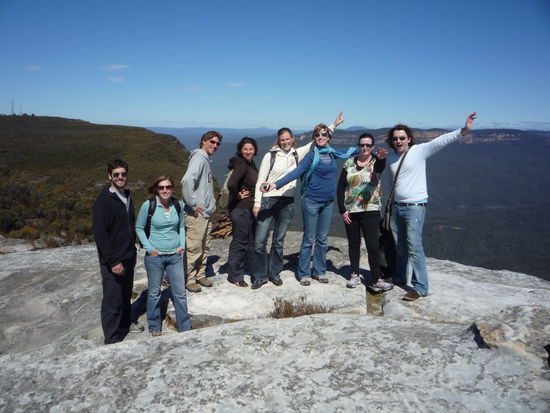 Den dritten Tag hab ich auf eigene Faust auf einer Tour in die Blue Mountains verbracht. Da sie schon um halb acht in Sydney losgehen sollte, musste ich schon um fuenf Uhr aufstehen - ja ihr habt richtig gelesen!!! Da war es dann gluecklicherweise noch sehr kalt, so dass ich mich warm angezogen hab - worueber ich mich hinterher in den Bergen wirklich sehr gefreut hab, da wars dann im Schatten naemlich doch ganz schoen kalt! Nach 450 Stufen runter zum unteren Ende der Wentworth Falls folgten weitere 450 wieder hoch - da war ich mal ganz schoen fertig, auch wenn man das natuerlich eigentlich keinem erzaehlen darf... Danach gings zu den Three Sisters, der beruehmtesten Felsformation der Blue Mountains (leider nicht ganz so spektakulaer wie die Wasserfaelle), die natuerlich wieder mit ein paar Treppen verbunden waren! Nachdem wir dann auf dem Rueckweg Richtung Sydney noch am Olympia Stadion Halt gemacht haben, war ich doch froh, dann abends am gedeckten Tisch ein leckeres Abendessen zu bekommen und danach tot ins Bett zu fallen!